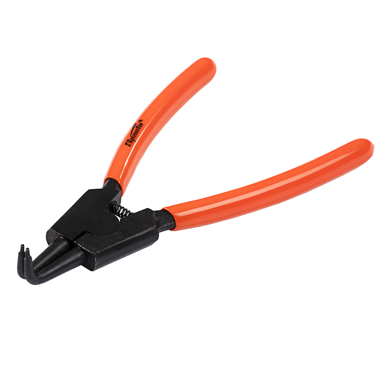 Съемник Sparta 183205 длиной 150 мм, с изогнутыми губками, работает на разжим и предназначен для снятия и установки внешних стопорных колец. Наконечники вставляются в отверстия ушек кольца, при сжатии рукояток кольцо разжимается, и его можно установить на посадочное место. Благодаря особой форме наконечников ушки кольца не соскальзывают с них. Съемник стопорных колец используется для ремонта автомобилей, велосипедов, бытовой техники.