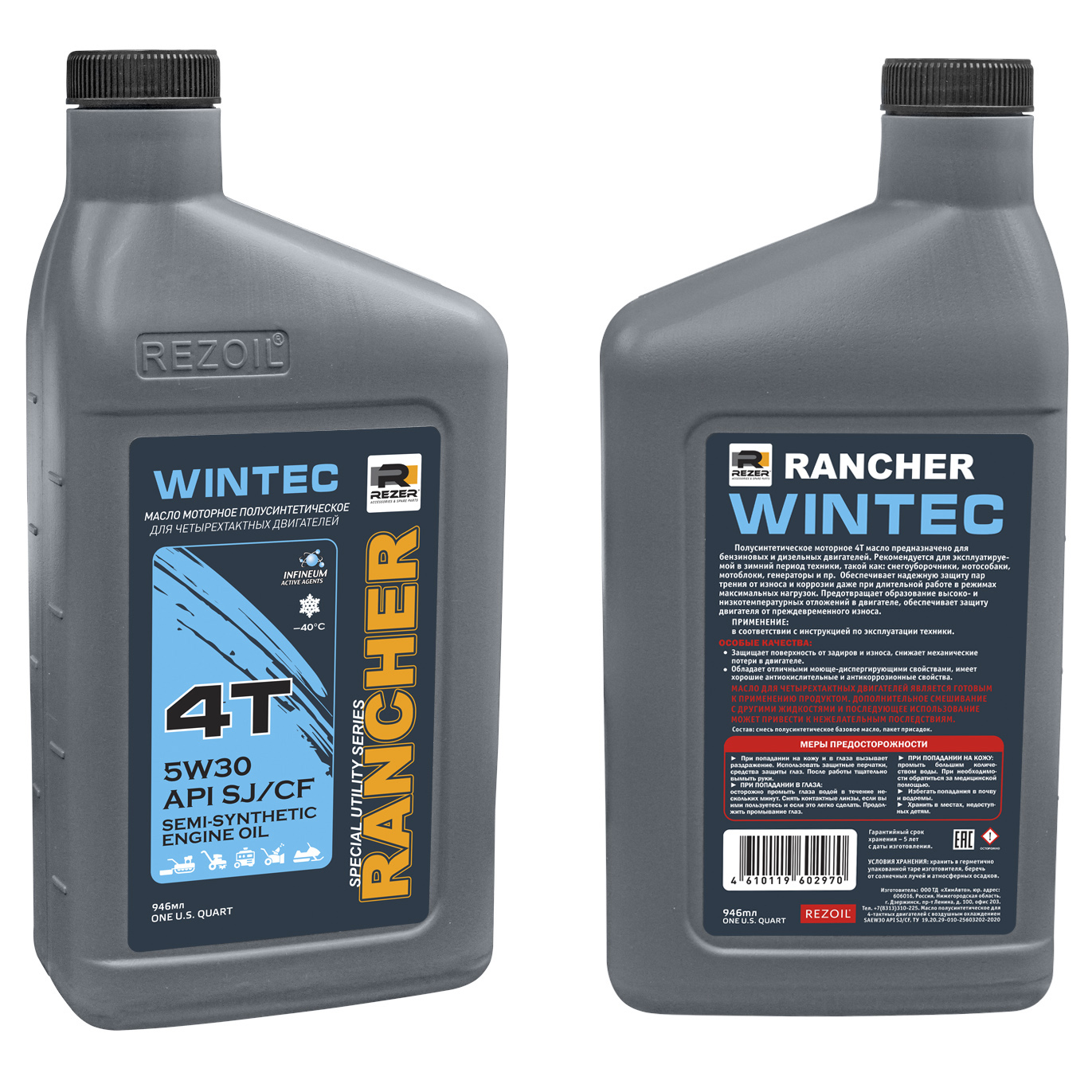 Масло моторное 4-х тактное SAE5W30 полусинтетика Rezer Rancher Wintec 0.946