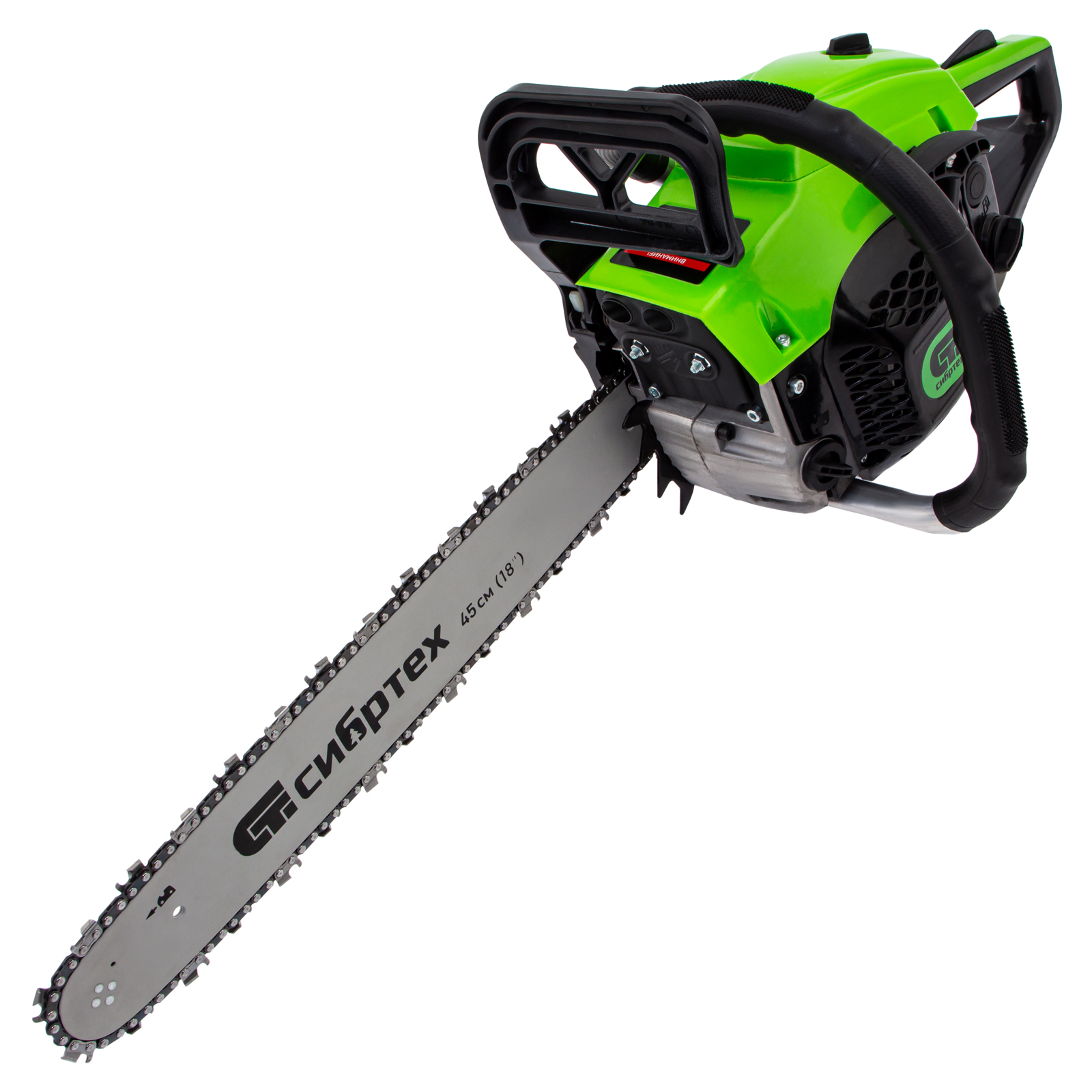 Пила цепная бензиновая Сибртех ПЦБ-5245 95204 мощностью 3,4 л.с. комплектуется шиной длиной 45 см с 72 звеньями (шаг 0,325″, паз 1,5 мм). Рассчитана на облагораживание приусадебных участков, валку деревьев, распиловку бревен, заготовку дров, подравнивание насаждений в саду, подпиливание веток. Оптимальна для бытового использования.
