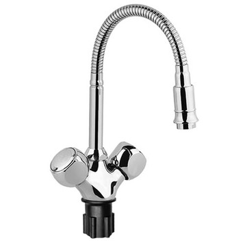Двухвентильный смеситель из латуни снабжен кран-буксами с керамическими пластинами