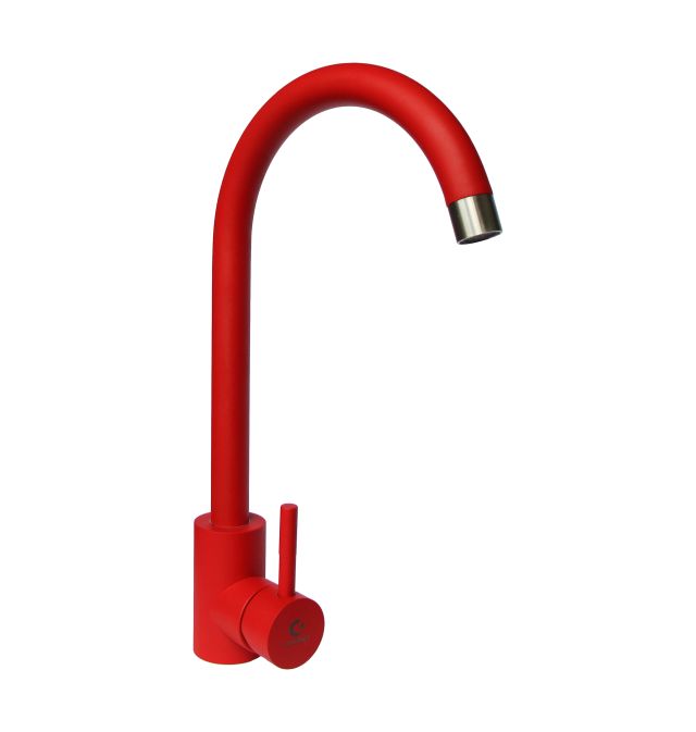 Кран оснащен кран-буксой: АК-01 (180°, 1/2, 20 шлицов), поворотным изливом и гибкой подводкой 1/2’ . В качестве крепежа используется гайка.
