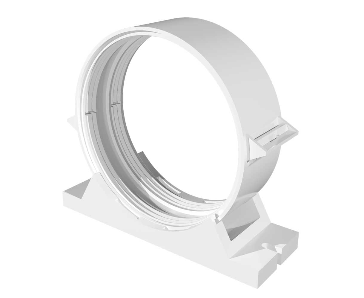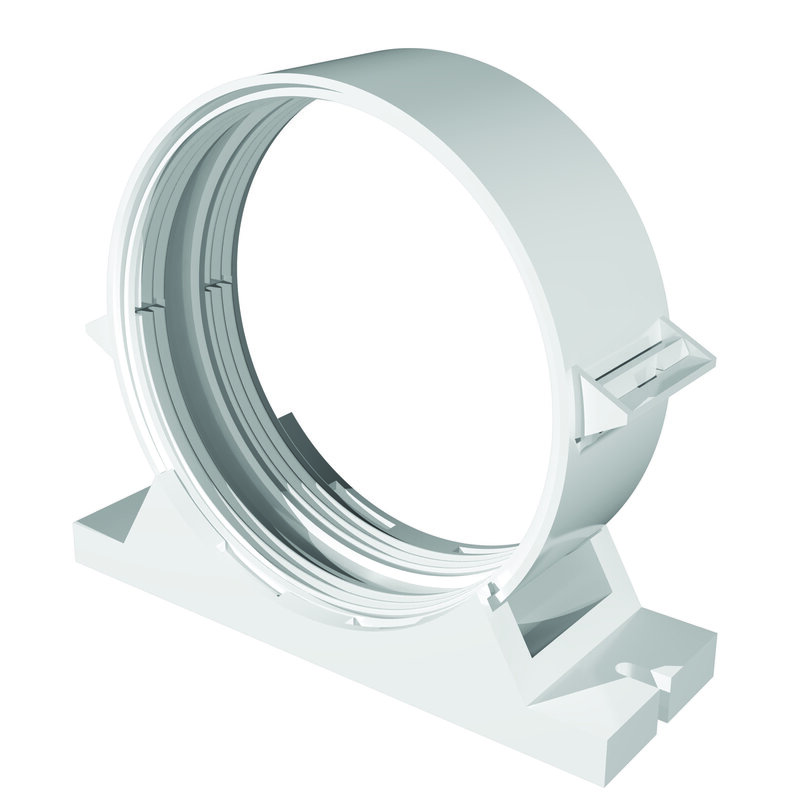 Держатель Era 10RDH круглого канала 90мм предназначен для крепления пластикового воздуховода к поверхности стены, потолка или пола. Данный держатель состоит из одной части, крепится к потолку. Гибкий пластик держателя защелкивается на воздуховоде, при необходимости лапки можно стянуть нейлоновым хомутом.