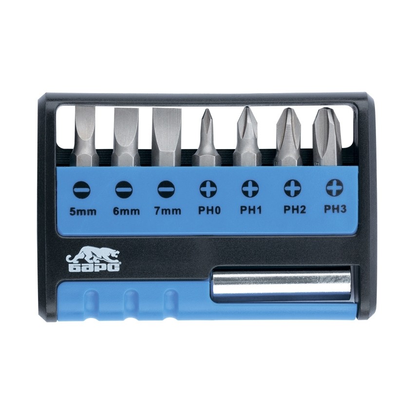 Профессиональный набор Барс включает 7 бит и магнитный держатель. С его помощью можно производить монтажные и демонтажные работы с крепежом разного типа: PH 0, 1, 2, 3 и SL 5-7. Благодаря правильной геометрии оснастка не теряет эксплуатационных свойств даже при интенсивных нагрузках.