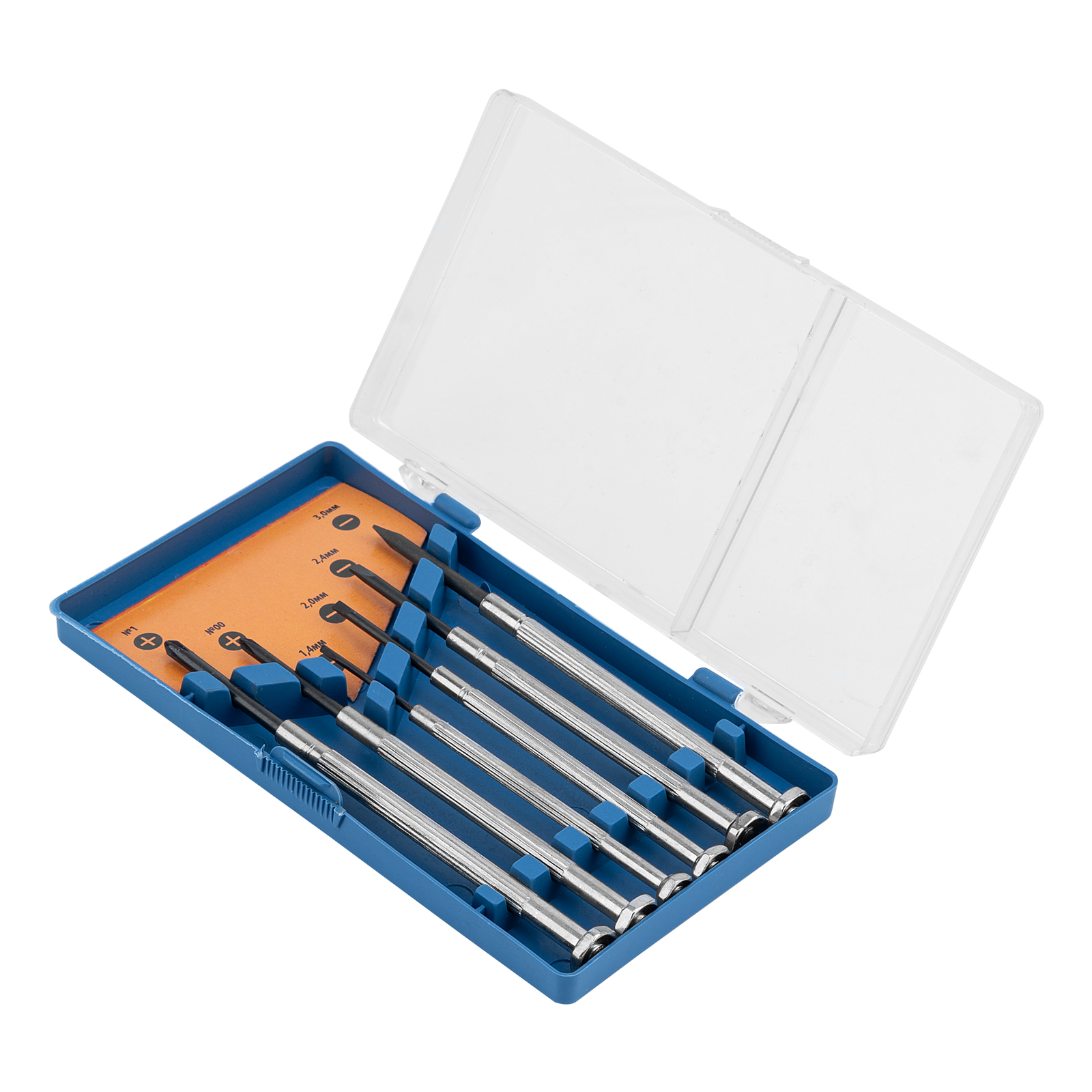 Набор отверток Sparta 133445, 6 предметов, используется для точной механики при осуществлении монтажа/демонтажа микровинтов со шлицами SL и PH. Он рассчитан на несложные бытовые работы, может применяться в частной мастерской. С помощью набора легко ремонтировать мелкие бытовые приборы, очки, часы и т.д.