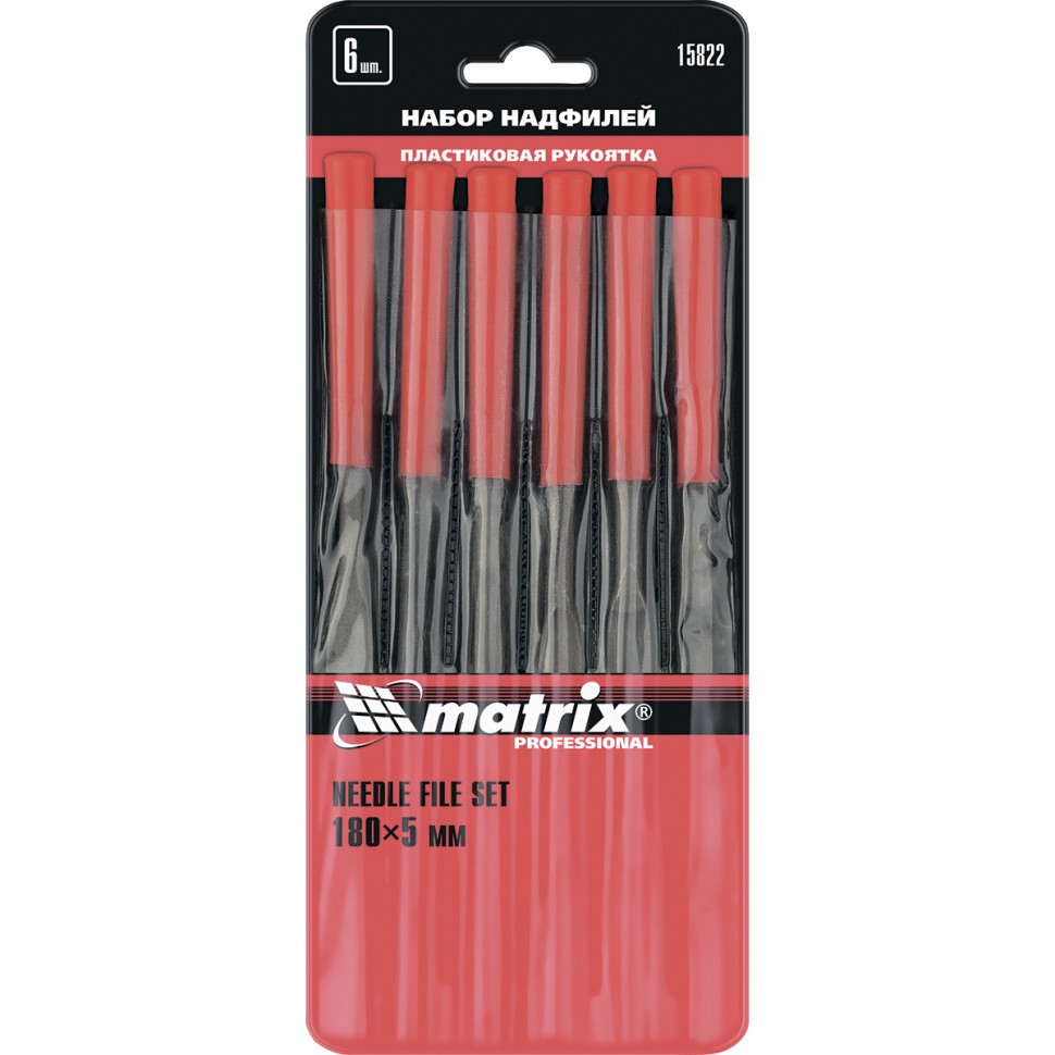 Набор надфилей, 180 х 5 мм, 6 шт, пластиковые рукоятки Matrix