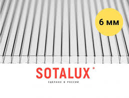Сотовый поликарбонат 6 мм прозрачный Sotalux 2,1х6 м (12,6 кв.м) защитная пленка с 1 стороны 0,75