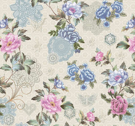 Клеёнка на нетканой основе "Мажор" "Пионы на кружеве голубые" шир.1,35м 588/1 "Колорит"