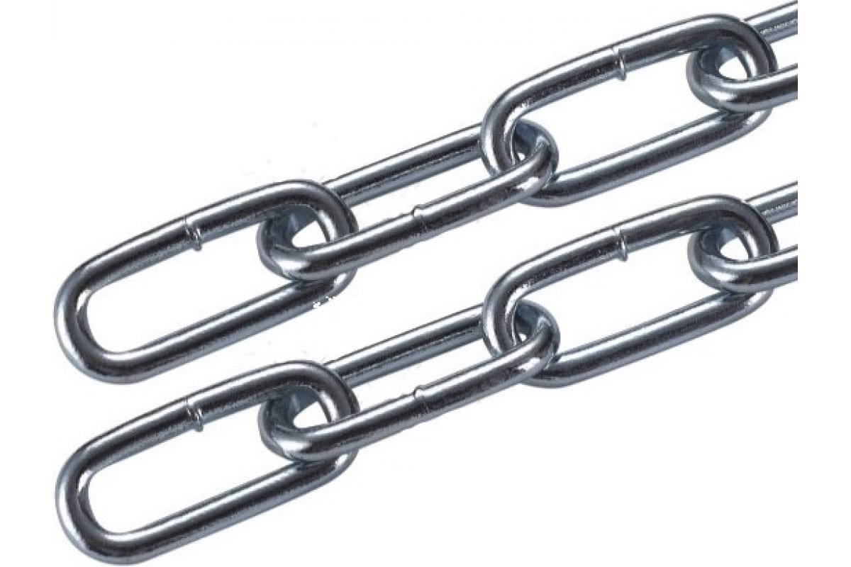 Цепь длиннозвенная 3 мм DIN 763 оцинкованная – такелажное изделие общего назначения из углеродистой стали. Подойдет для закрепления грузов на транспортных платформах, в качестве цепной растяжки и страховки в конструкциях, для работы с тяговыми механизмами и бытовых нужд. Не предназначена для грузоподъемных операций!